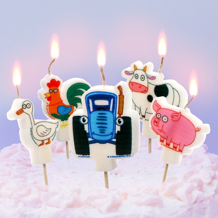 Свечи для торта, Синий трактор, набор 5 шт.