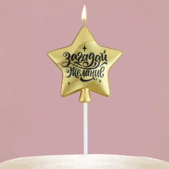 Свеча для торта «Загадай желание», золотая, 5,5 х 12 см