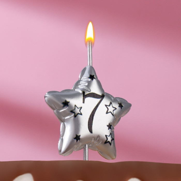 Свеча в торт на шпажке «Воздушная звездочка», цифра 7, 3.5 см, серебро