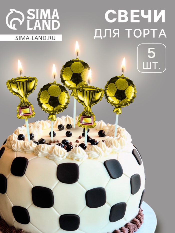 Свечи для торта «Кубки и футбольные мячи», 5 шт., на шпажке