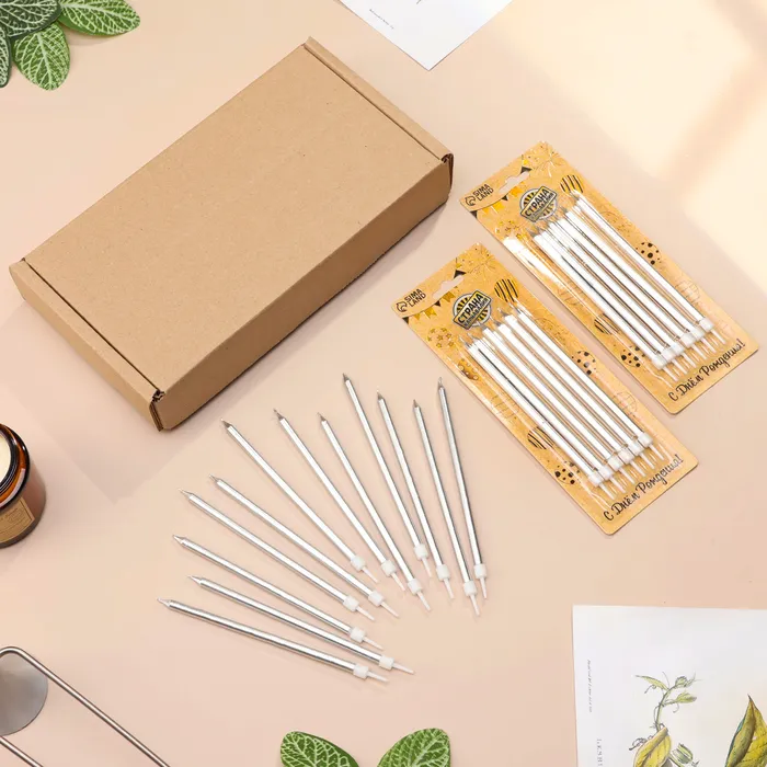 Свечи для торта, серебро, 6 шт., 9,5 х 0,9 см