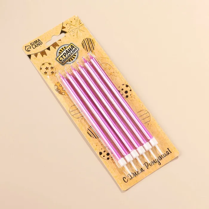 Свечи для торта «Блестящая вечеринка», 6 шт., розовые, высокие