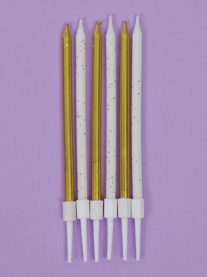 Свечи для торта «Блестящая вечеринка», 6 шт, золотой и белый цвет