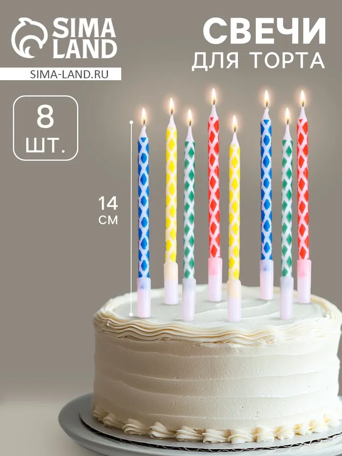 Свечи в торт «Ромбик» с подставкой, 14 см, 8 шт.