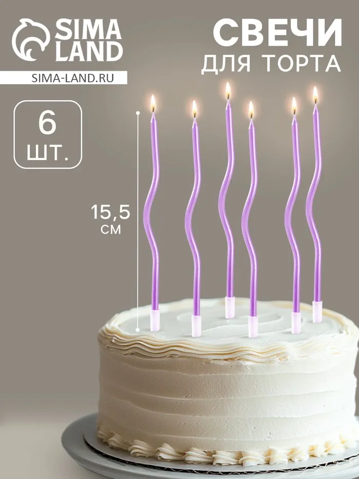 Свечи для торта витые «Серпантин» 6 шт., коктейльные, фиолетовые