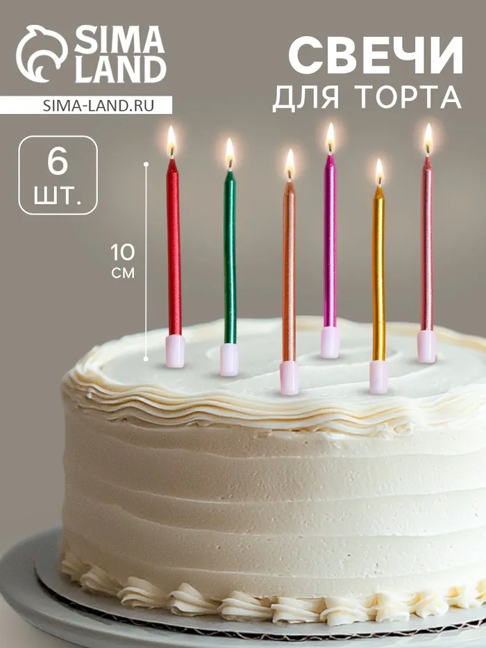 Свечи в торт коктейльные «Шайн», 6 шт., 10 см, металлик