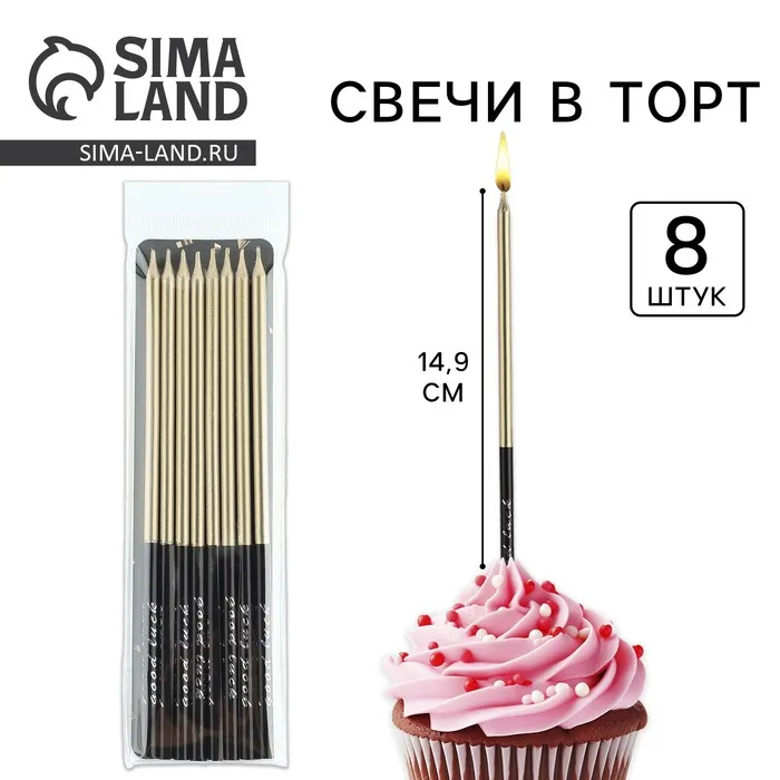 Свечи для торта «В твой особенный день», шампань, 8 шт, 14,9 х 0,5 см