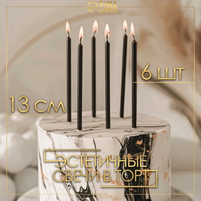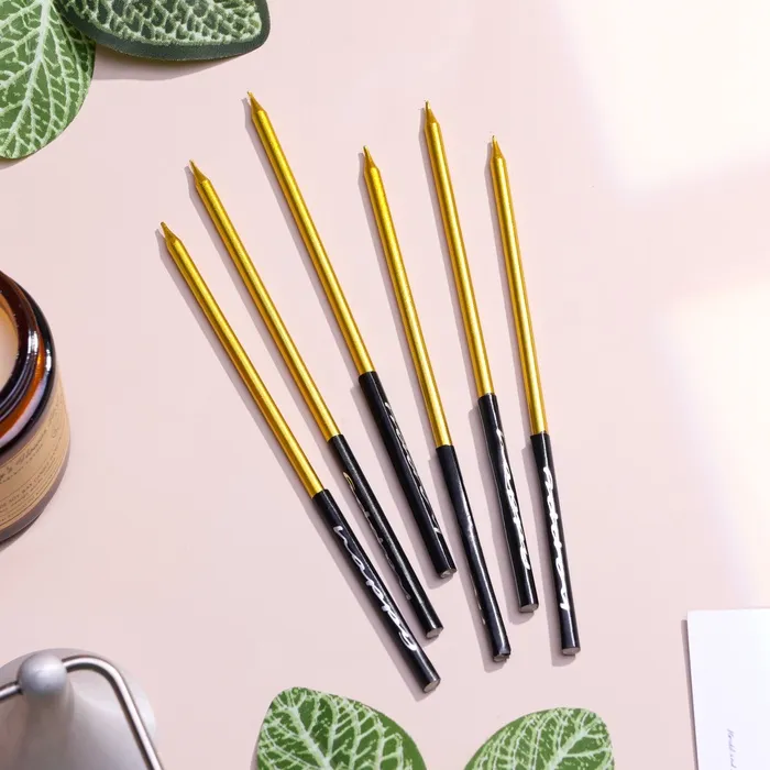 Свечи в торт «Праздник», 6 шт., 14.5 см, золото с чёрным