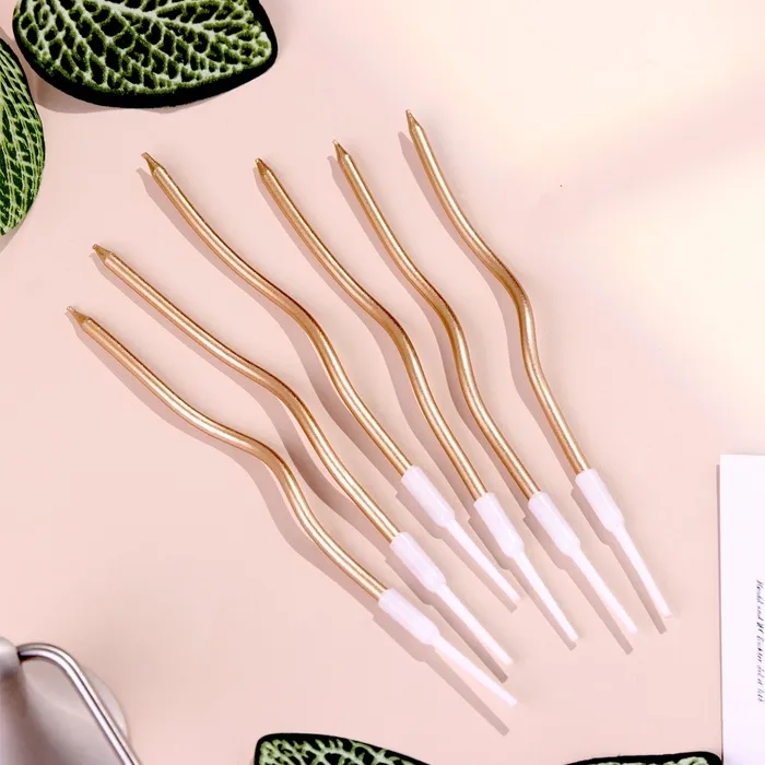 Свечи в торт «Спираль», 10 шт., средние, 5 см, золотой металлик