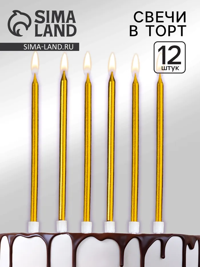 Свечи для торта «Ройс», 12 шт., золотой металлик