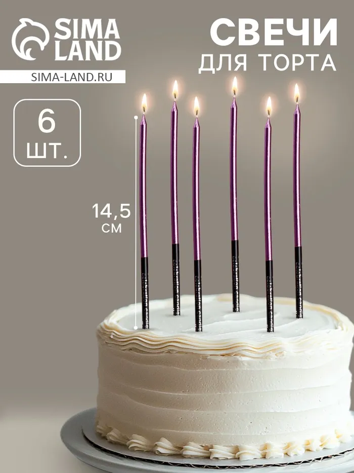 Свечи в торт «Праздник», 6 шт., 14.5 см, фиолетовый с чёрным