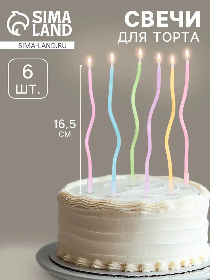 Свечи в торт коктейльные витые «С днем рождения», 6 шт., 16.5 см, разноцветные