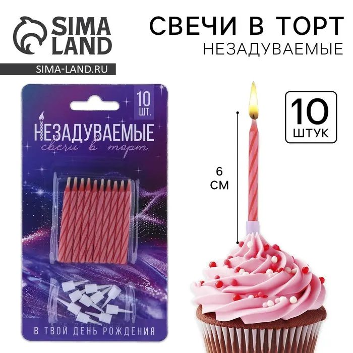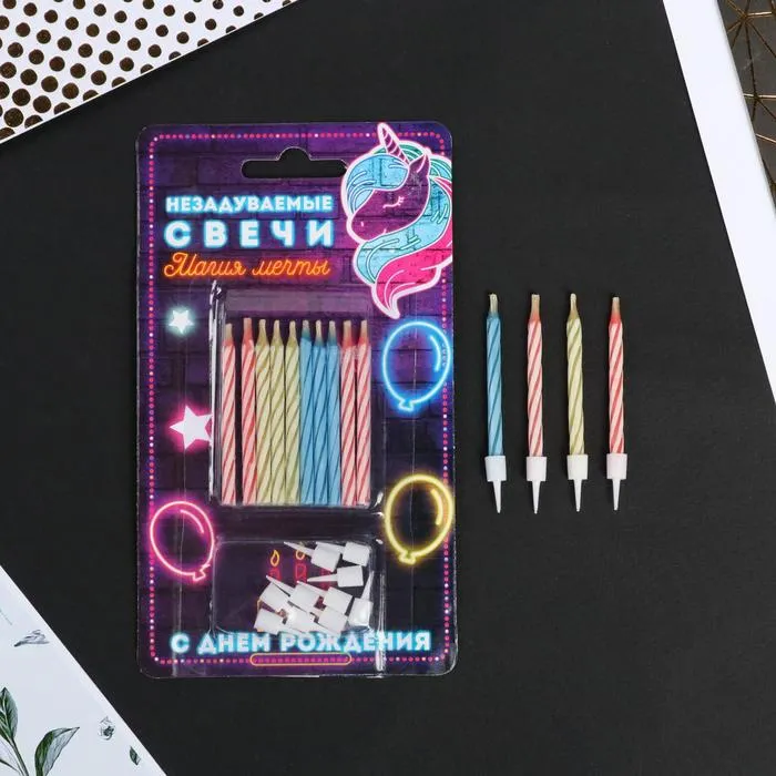 Свечи для торта незадуваемые «Магия мечты», 10 шт., 5,7 х 0,4 см