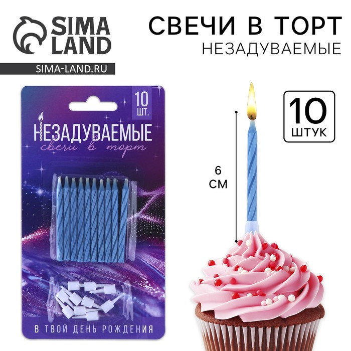 Свечи для торта незадуваемые «В твой день рождения», голубые, 10 шт., 6 х 0,4 см