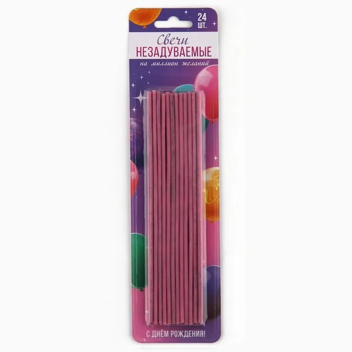 Свечи для торта незадуваемые, розовые, 24 шт., 16,8 х 0,3 см