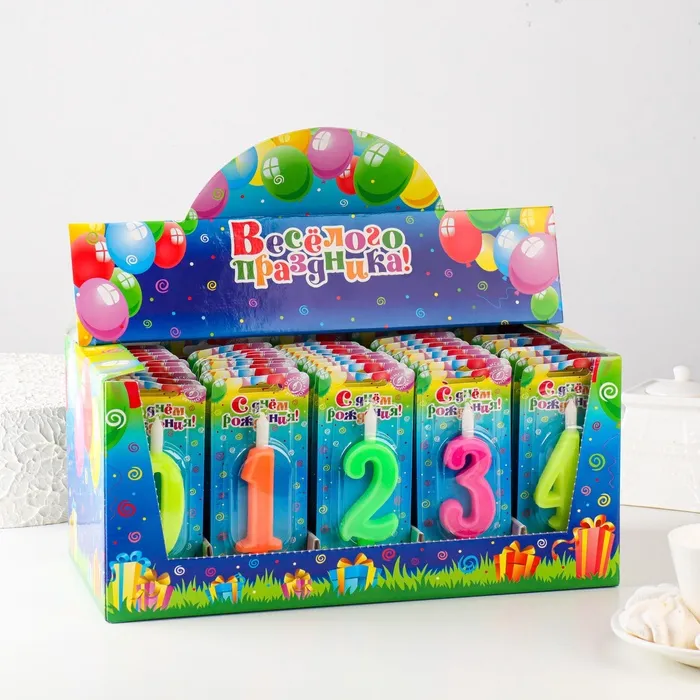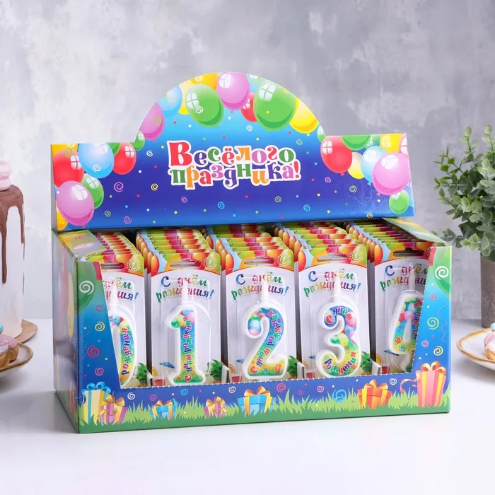 Свечи для торта цифры «С Днём Рождения», 10.2 см, в шоу-боксе, 50 штук