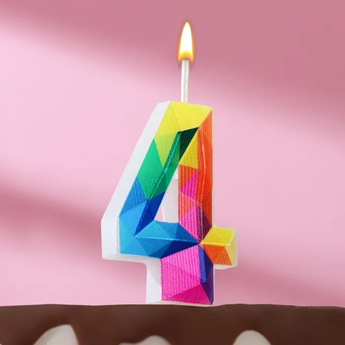 Свеча в торт на шпажке «Разноцветные грани», цифра 4, 5.3 см