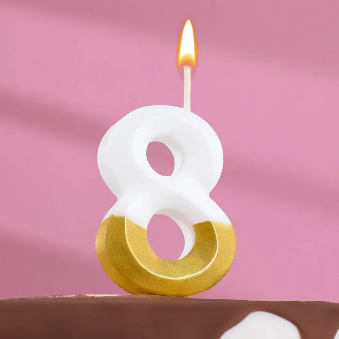 Свеча для торта на шпажке «Грань», цифра 8, 5.5 см, бело-золотая