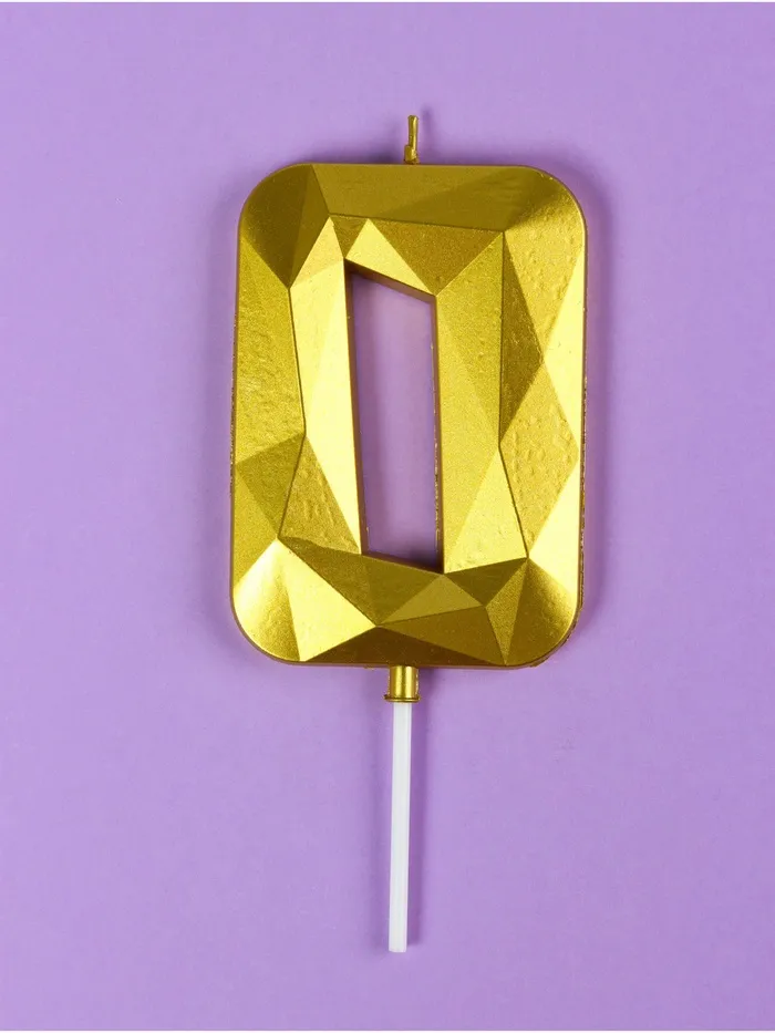 Свеча в торт на шпажке «Грань», цифра 0, золотая, 9 см, ГИГАНТ