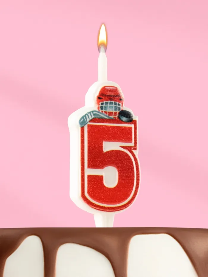 Свеча в торт «Хоккейная», цифра 5, красная