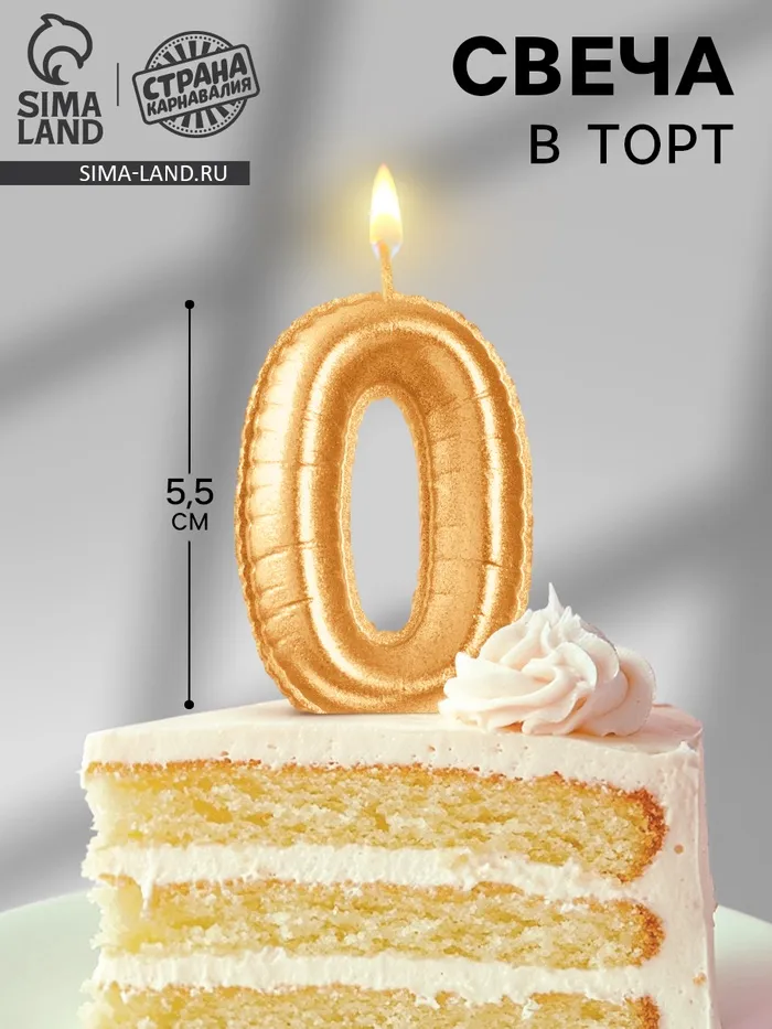 Свеча в торт «Шары», цифра 0, золото, 5.5 см