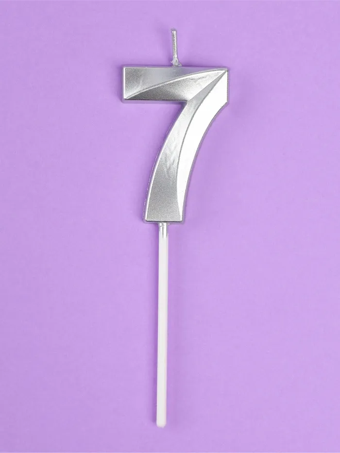 Свеча в торт на шпажке «Грань», цифра 7, серебро, 5 см