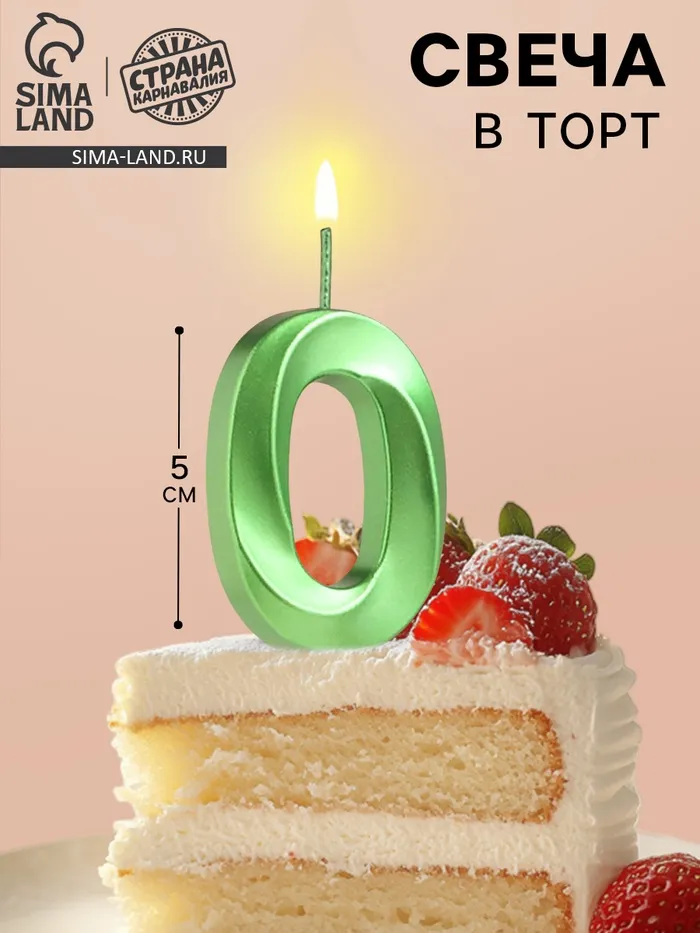 Свеча в торт на шпажке «Цифра 0», зеленая, 5 см