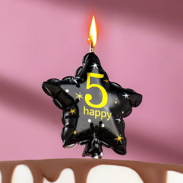 Свеча в торт на шпажке «Воздушный шарик.Звезда», цифра 5, 5.5 см, черная с золотом