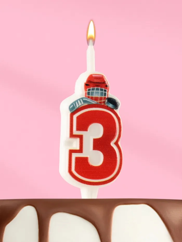 Свеча в торт «Хоккейная», цифра 3, красная