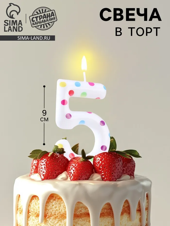 Свеча в торт на день рождения «Цифра 5 », 9 см