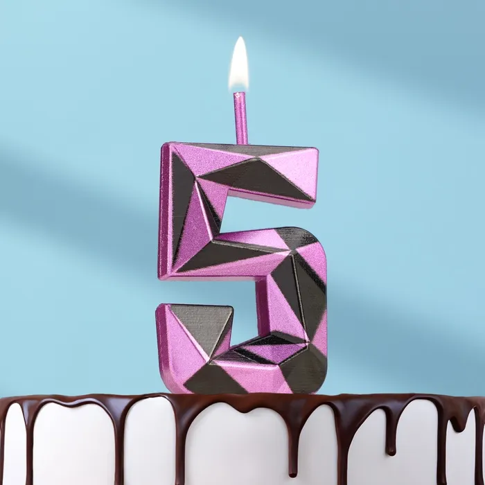 Свеча для торта «Алмаз», цифра 5, фиолетовый металлик
