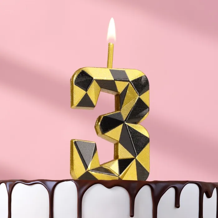 Свеча для торта «Алмаз», цифра 3, золотой с черным