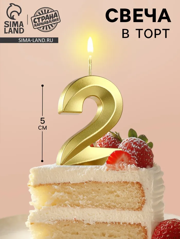 Свеча в торт на шпажке «Цифра 2», золотая, 5 см