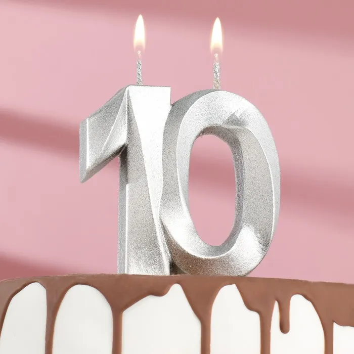 Свеча в торт юбилейная «Грань», цифра 10, серебро