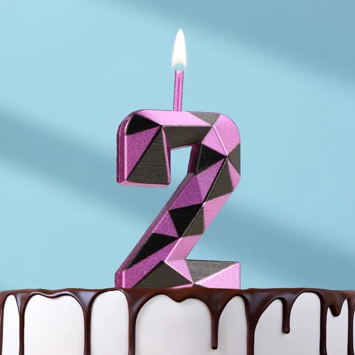 Свеча для торта «Алмаз», цифра 2, фиолетовый металлик