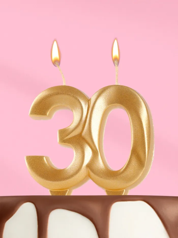 Свеча в торт юбилейная «Грань», цифра 30, золотой металлик, 6.5 см