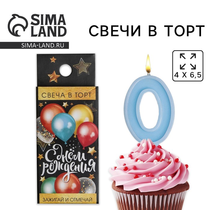 Свеча в торт голубая «Цифра 0»