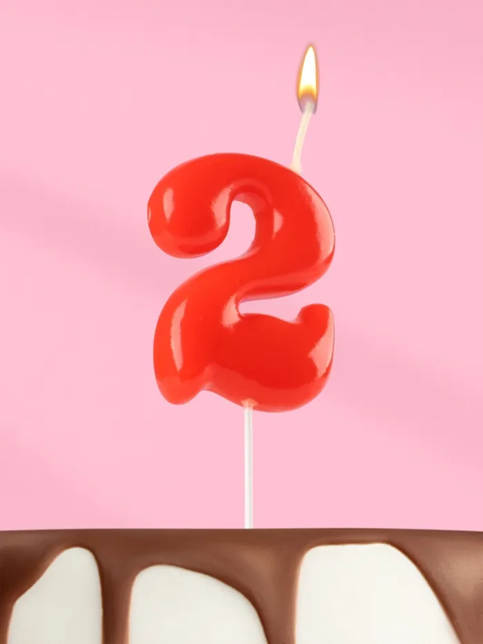 Свеча в торт «Красная», цифра 2