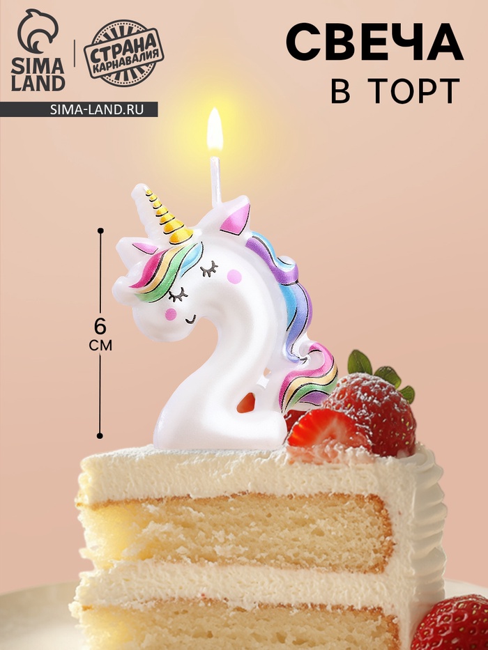 Свеча в торт «Европейская», цифра 2, 6 см, серебро