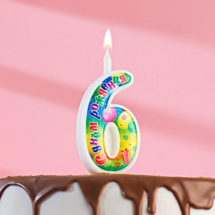 Свеча для торта цифра «День рождения», 10.2 см, цифра 6«