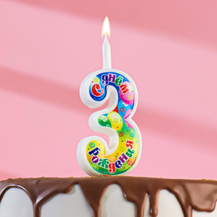 Свеча для торта цифра «День рождения», 10.2 см, цифра 3«