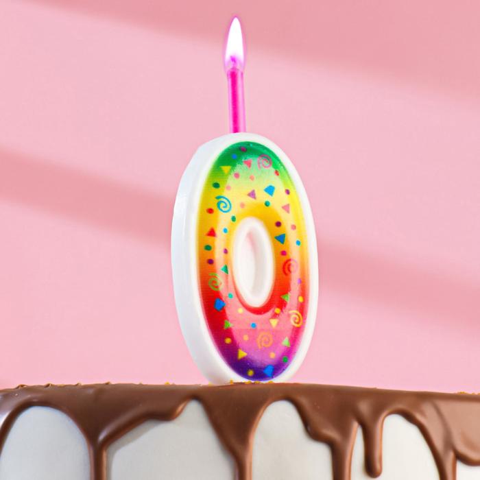 Свеча для торта «Цветное пламя», 10 см, цифра 0