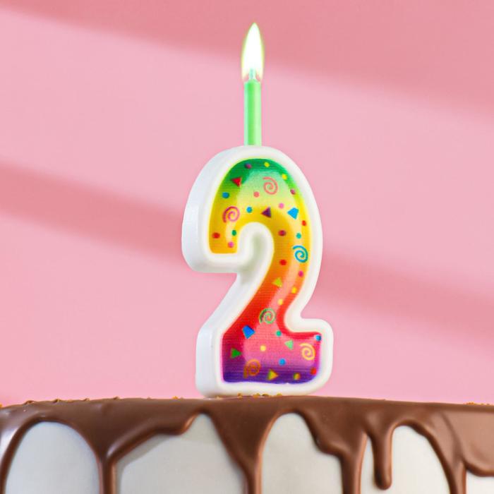 Свеча для торта «Цветное пламя», 10 см, цифра 2
