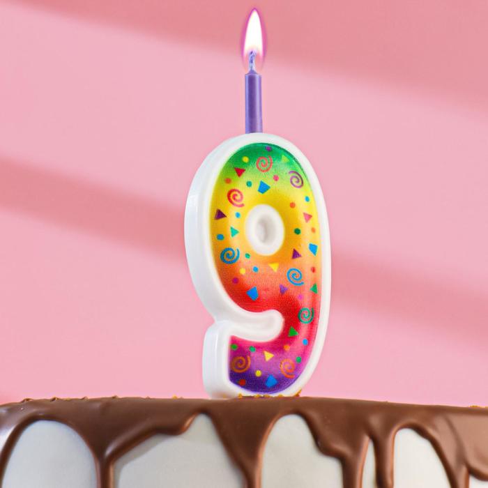 Свеча для торта «Цветное пламя», 10 см, цифра 9