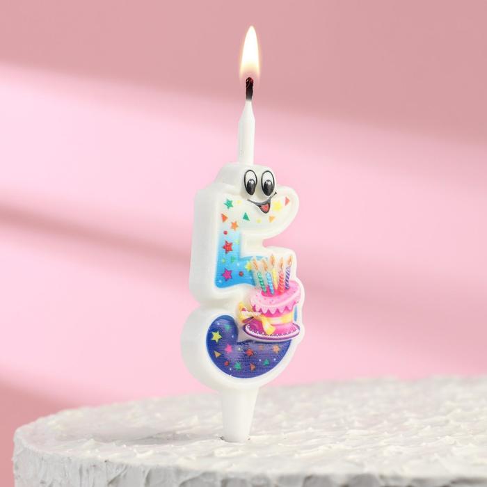 Свеча для торта «С глазками», 10.2 см, цветная цифра 5