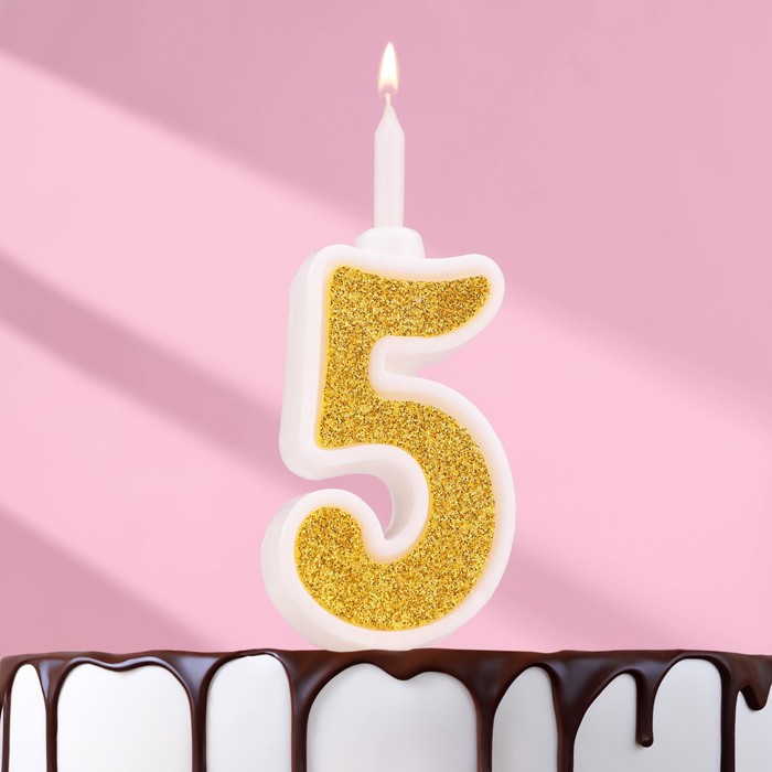 Свеча для торта «Суперблеск», 10.4 см, цифра 5, золотая блестка