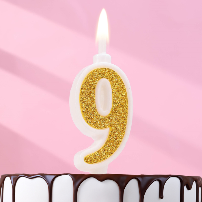 Свеча для торта «Суперблеск», 10.4 см, цифра 9, золотая блестка