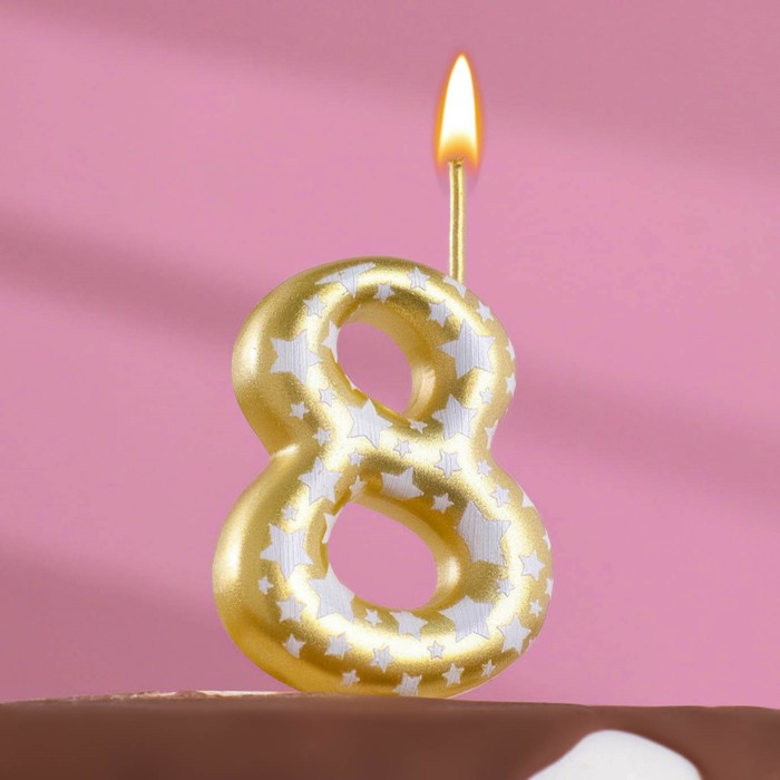 Свеча для торта «Золотая со звездами», цифра 8, 5.5 см