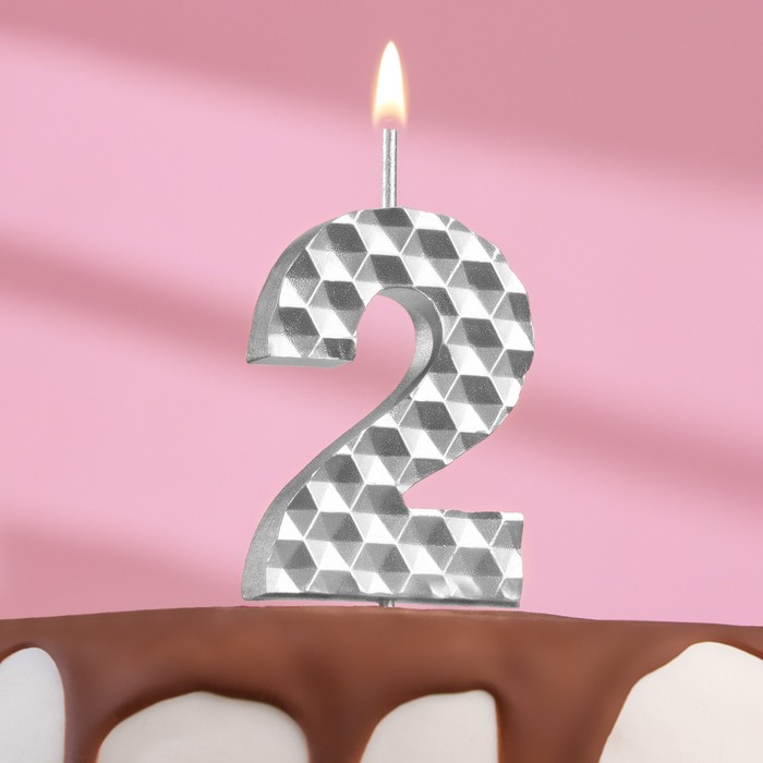 Свеча в торт на шпажке «Соты», цифра 2, 7 см, серебро