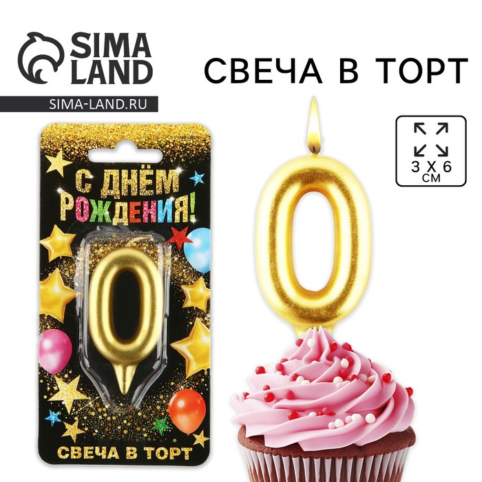 Свеча для торта, цифра «0», золото, 3×6 см